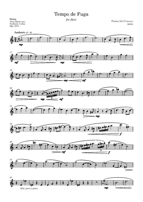 This composition is highly lyrical and elvish, featuring a melody that starts modal, evolves into something different, and concludes in a classic D minor. The delay acts like a canon, imitating the main line three times. The 3/4 time signature adds a special effect, with repetitions occurring every 4 beats.